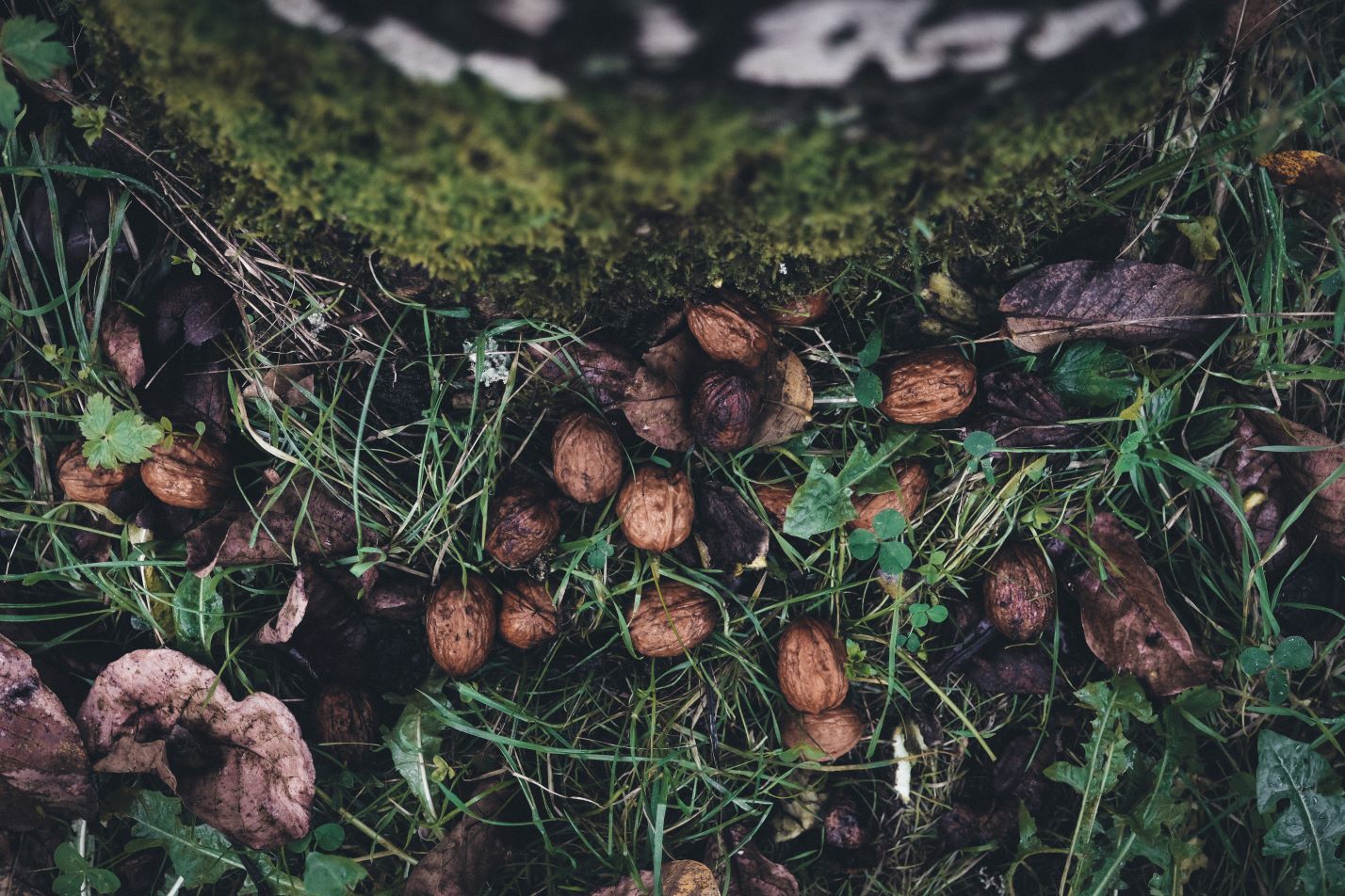 Im September-Oktober kam die Nuss aus dem Busch und ihre braune Hülle schützt nun den Kern.
